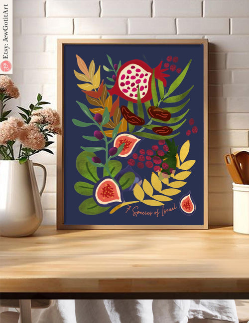 Art Fruits Poster 7 Species of Israel, Premium Matte Vertical Posters, Jewish gift, Israel, hand drawn art, Jewish Art, wall decor, posters -